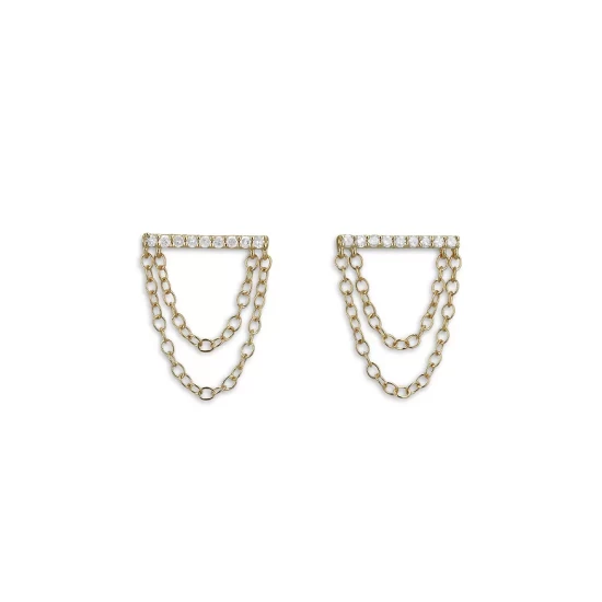 - Swingy chains fall from horizontal diamond bars in these glamorous drop earrings