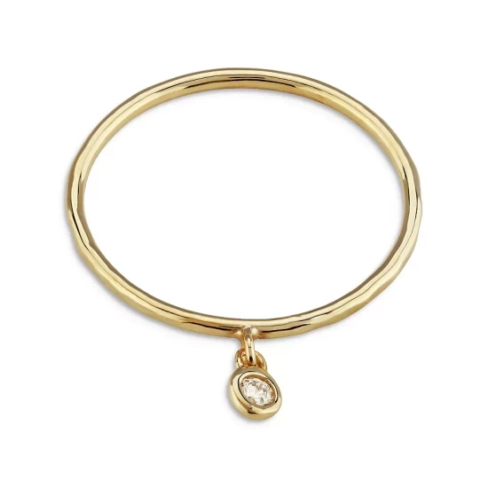 - Shiny polished gold ring with dangling diamond in a bezel setting