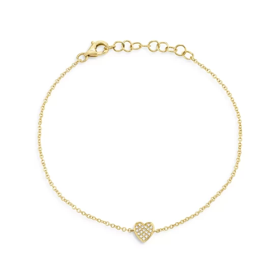 - Diamond-encrusted heart pendant decorates a simple chain bracelet