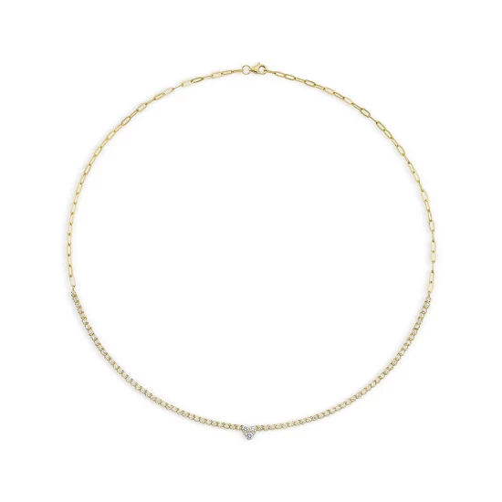 - A diamond heart cluster is set in the center of this stunning pavé collar necklace