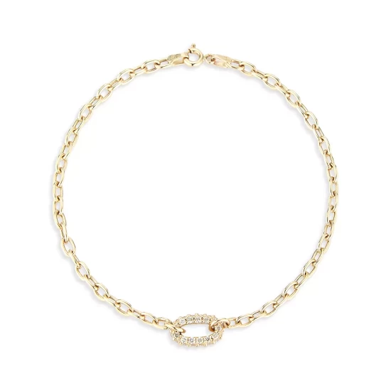 - A single oval link of diamond pavé adds glamour and elegance to a yellow gold bracelet