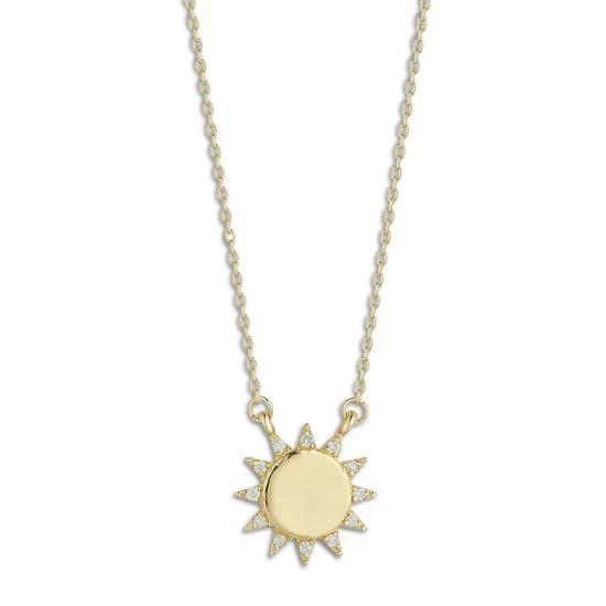 - Sparkling diamonds radiate from a gorgeous sun pendant necklace