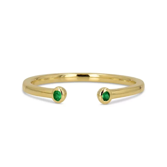 - Beautiful bezel-set emeralds add unexpected color to a chic cuff ring