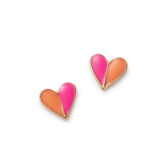 - Adorable enamel heart stud earrings in 14K yellow gold