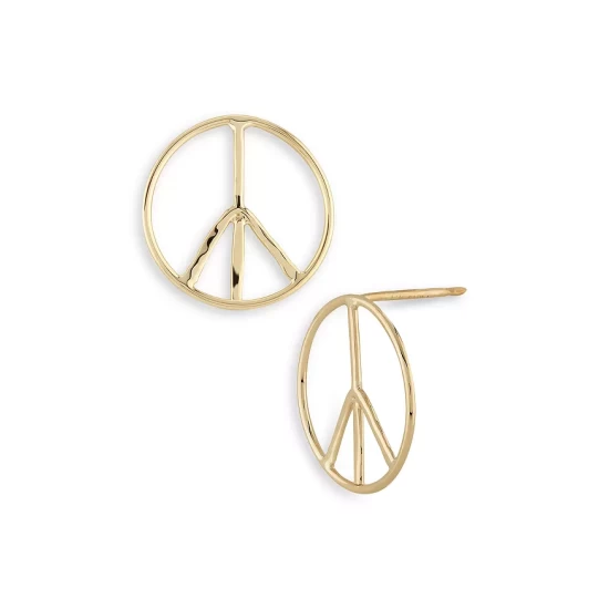 - Let your inner peace be reflected in your style with 14k gold peace sign stud earrings