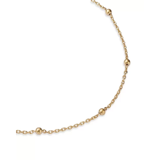 - Polished balls are stationed along a fine 14K yellow gold link chain