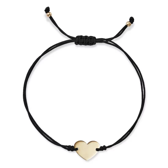 - Sweet and simple polished 14K yellow gold heart bolo bracelet in a cord style