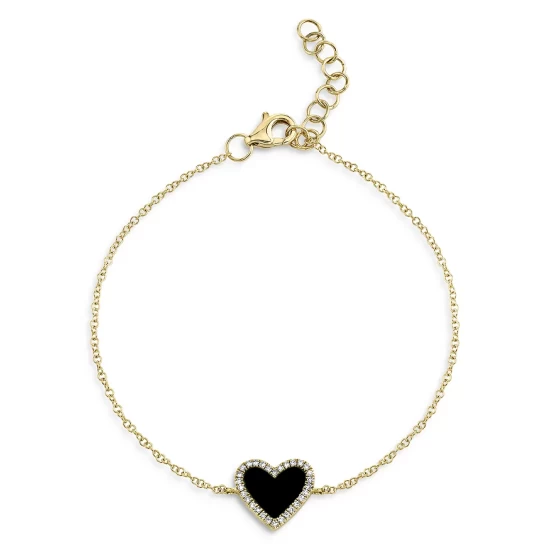 Moon & Meadow dishes up the love with this collection of turquoise, onyx, or mother-of-pearl heart bracelets. Each beautiful piece shimmers with diamond accents and is set in 14K yellow gold.