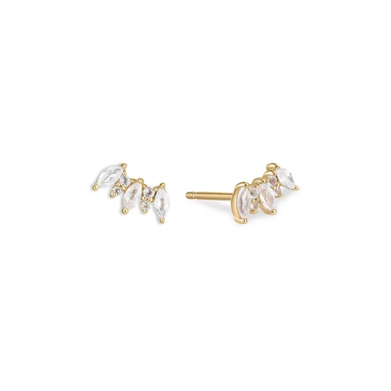 - This graceful ear crawler style sparkles with tapered and round white topaz stones