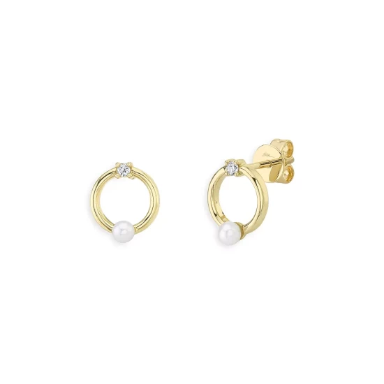 - Gold circle studs dotted with a pearl and sparkling diamond