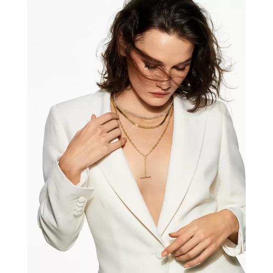 - A circle diamonds set in gold form a sparkling tennis necklace